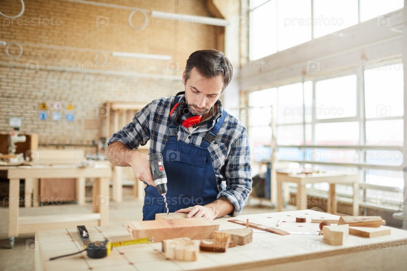 Опытный плотник в мастерской