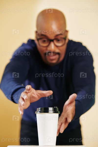 Мужчина, тянущийся за чашечкой кофе