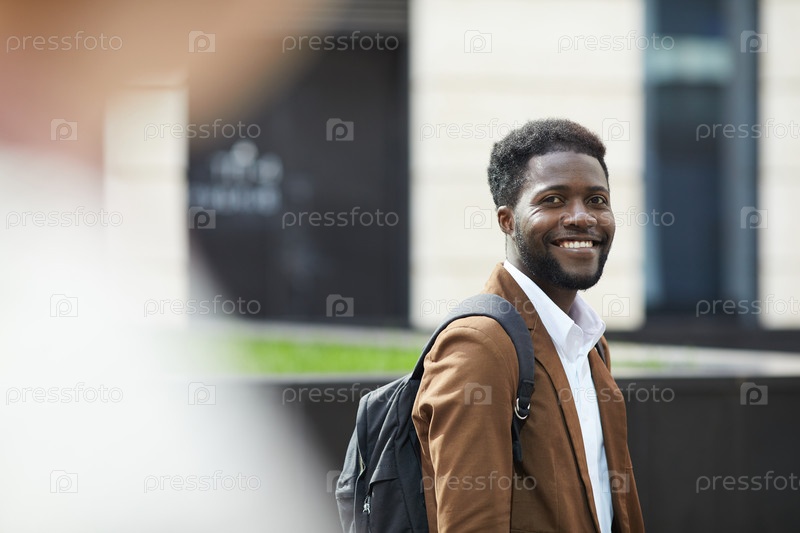 Афроамериканский мужчина улыбается перед камерой