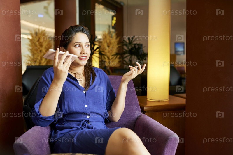 Женщина записывает аудиосообщение