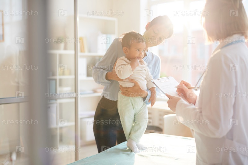 Врач пишет лечение для ребенка