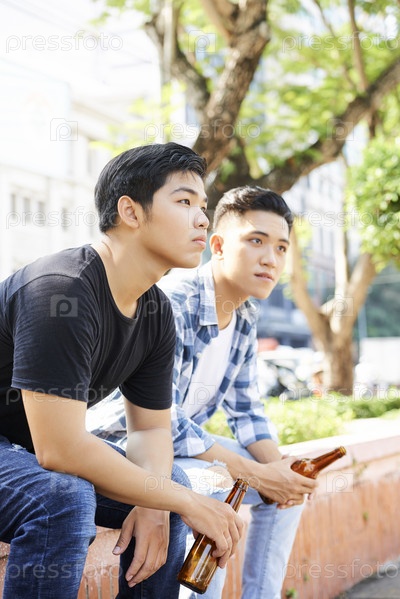 Друзья пьют пиво на свежем воздухе
