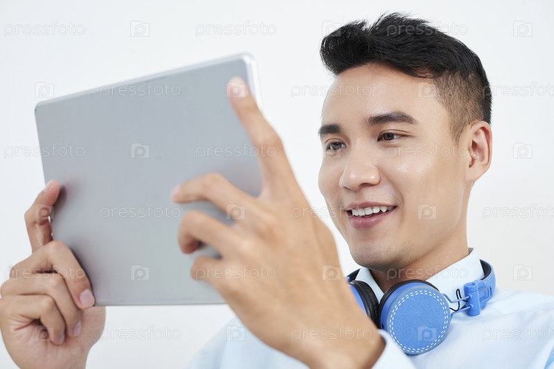 Улыбающийся студент с планшетом в руках