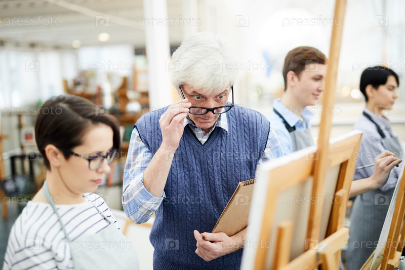 Учительница искусств в шоке, глядя на картину
