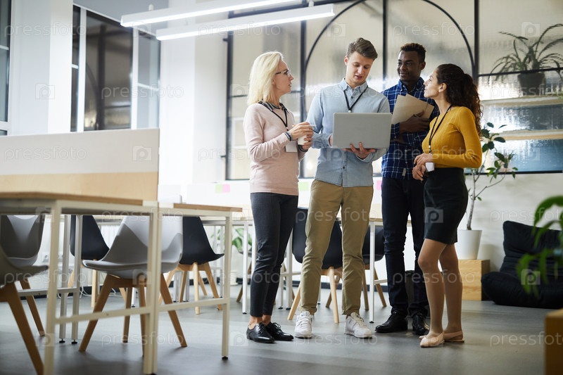 Коллеги анализируют онлайн-данные в коворкинг-пространстве