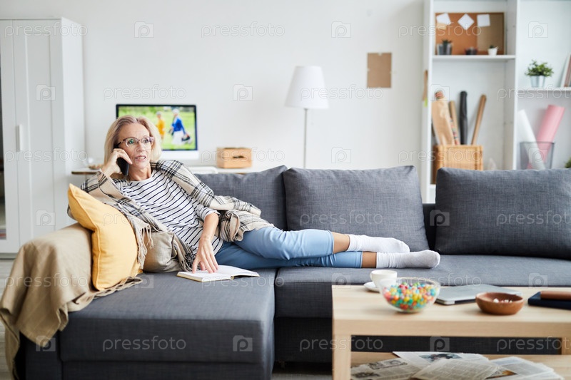 Зрелая женщина разговаривает по телефону дома