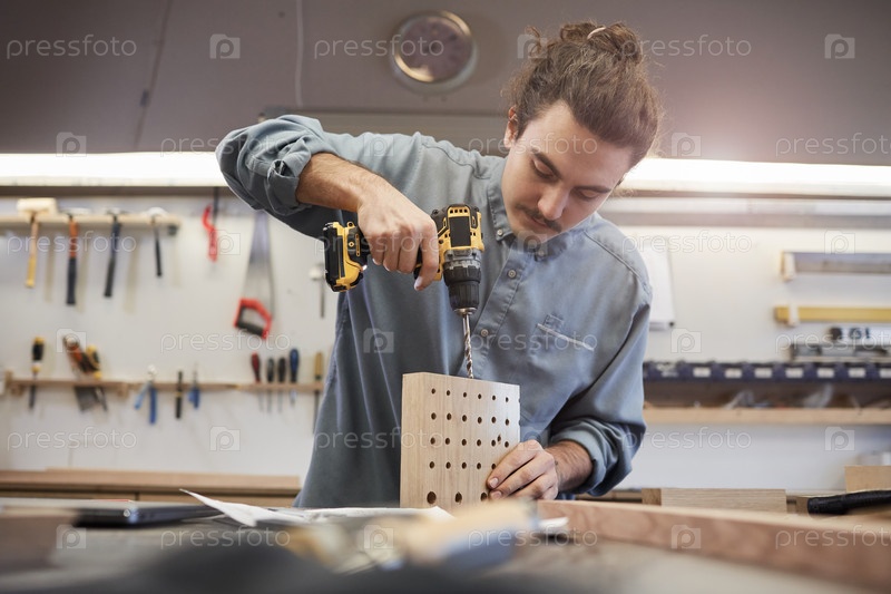 Человек делает детали из дерева