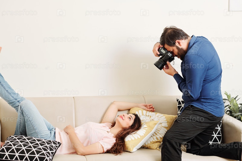 Молодая женщина позирует для фотографа