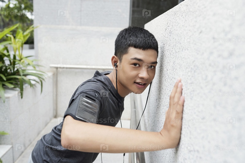 Мужчина делает стеновые отжимания
