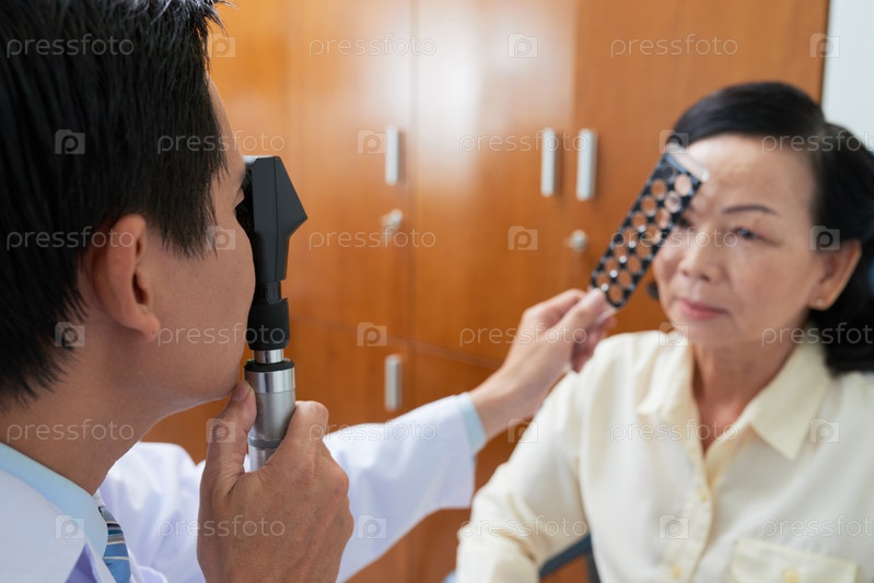Врач проверяет зрение пациента