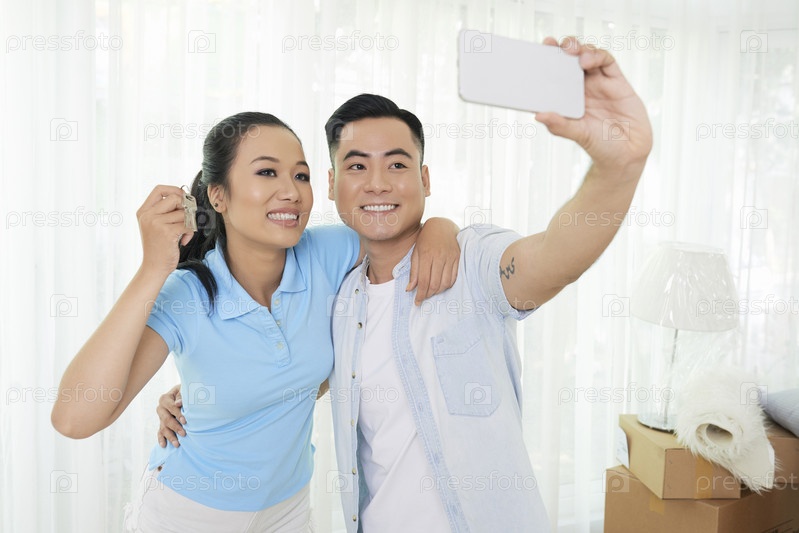Пара фотографирует в новых квартирах