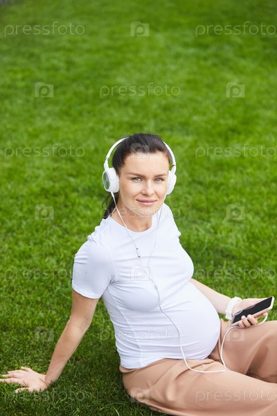 Беременная женщина слушает расслабляющую музыку
