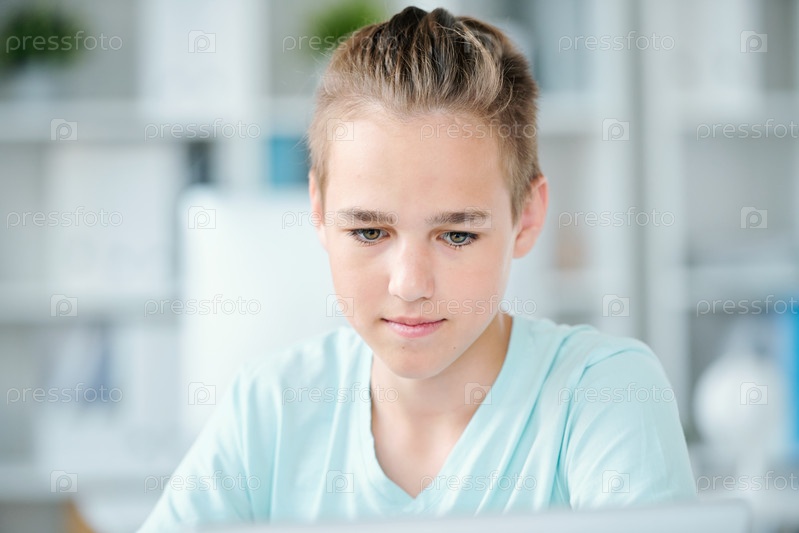 Милый ученик средней школы сосредотачивается на индивидуальной работе в школе