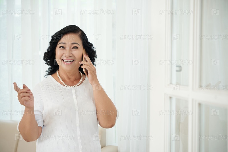 Зрелая женщина, разговаривающая по телефону
