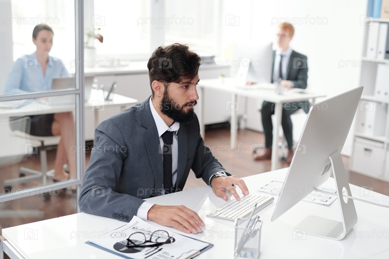 Бородатый бизнесмен, работающий в офисе