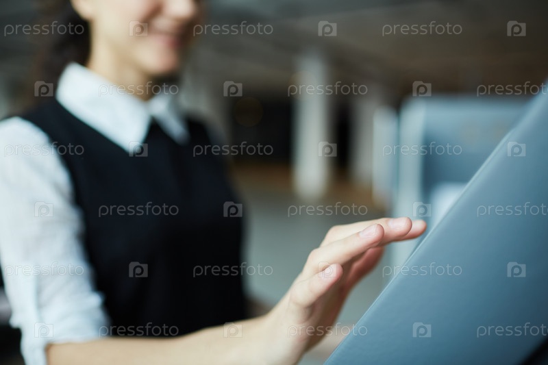 Размытая женщина, использующая билетный автомат