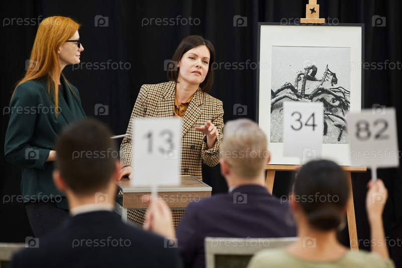 Женщина выбирает кандидата на аукционе