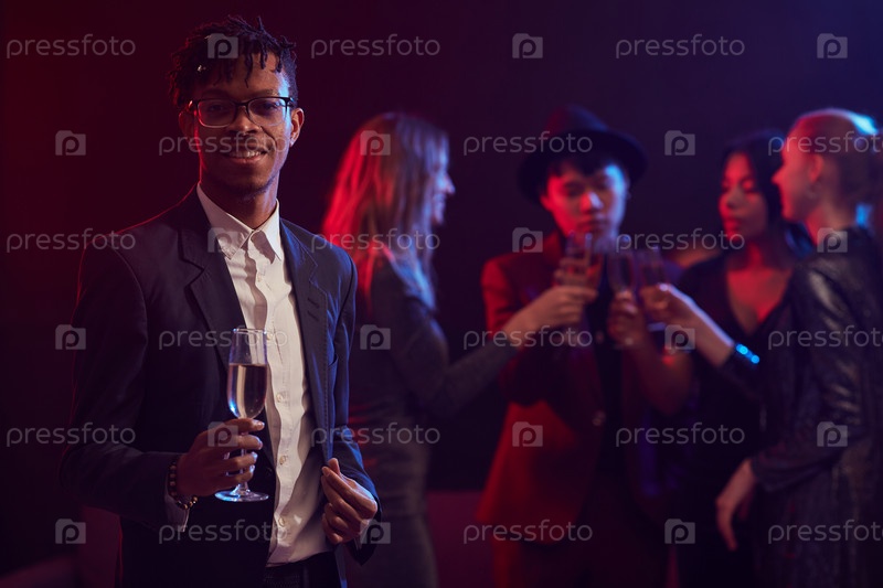 Элегантный африканский мужчина позирует в ночном клубе