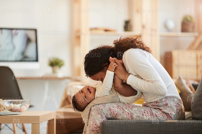 Молодая мама играет с милым малышом