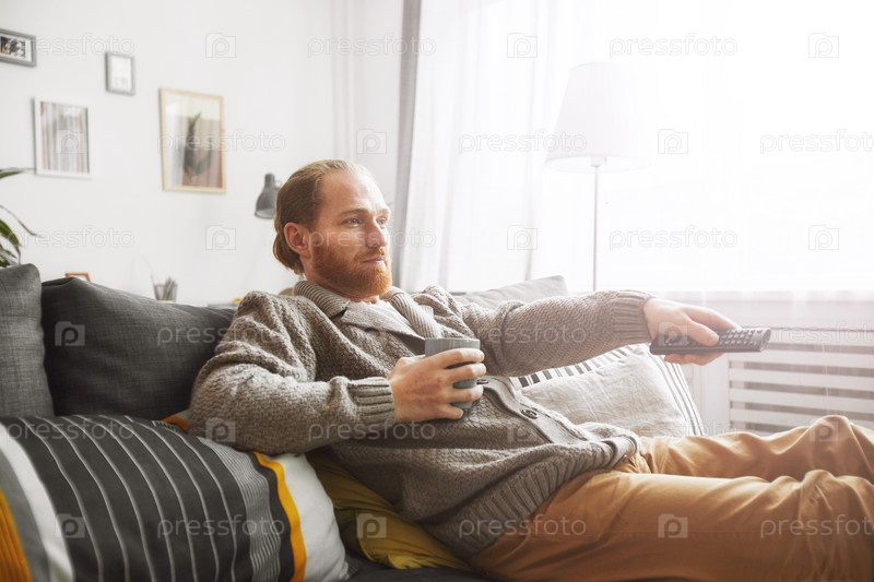 Человек, отдыхающий дома с телевизором