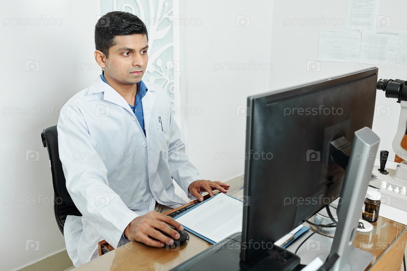 Доктор, работающий на компьютере в офисе
