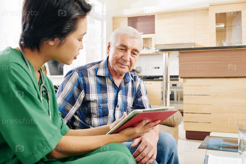 Старший мужчина учится использовать приложение для мониторинга здоровья