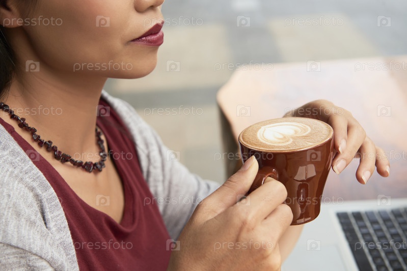 Женщина пьет кофе