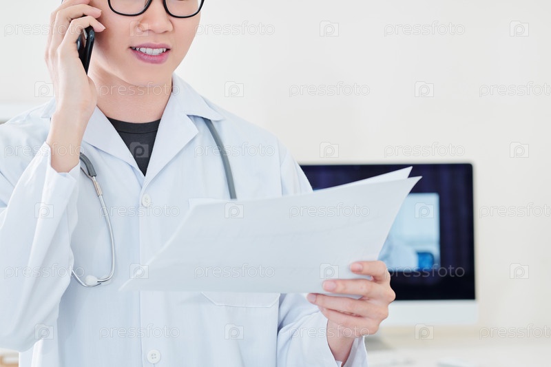 Врач общей практики разговаривает по телефону