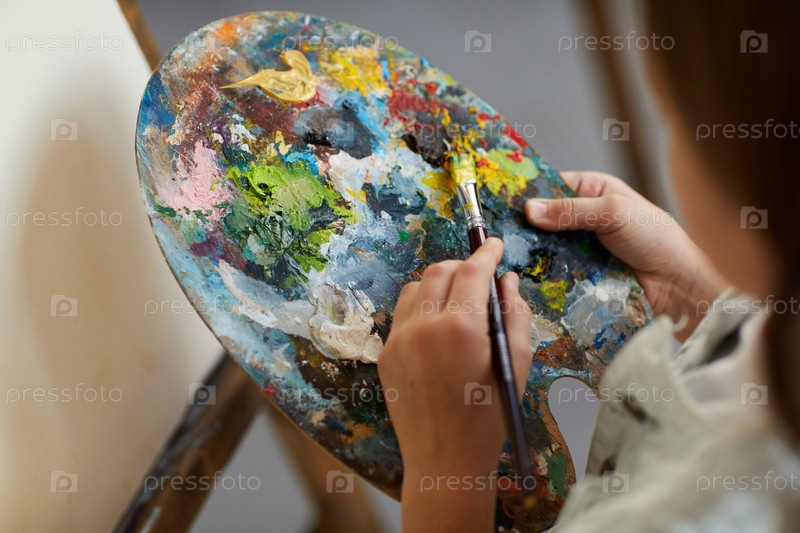 Маленький художник, держащий палитру