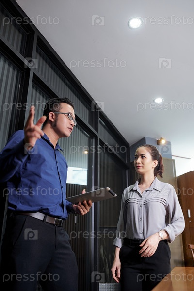 Busnesswomna listening to coworker Рабочая женщина слушает коллегу