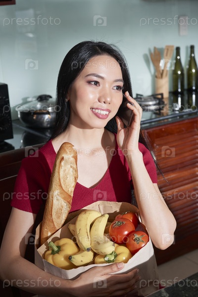 Красивая домохозяйка с сумкой для продуктов
