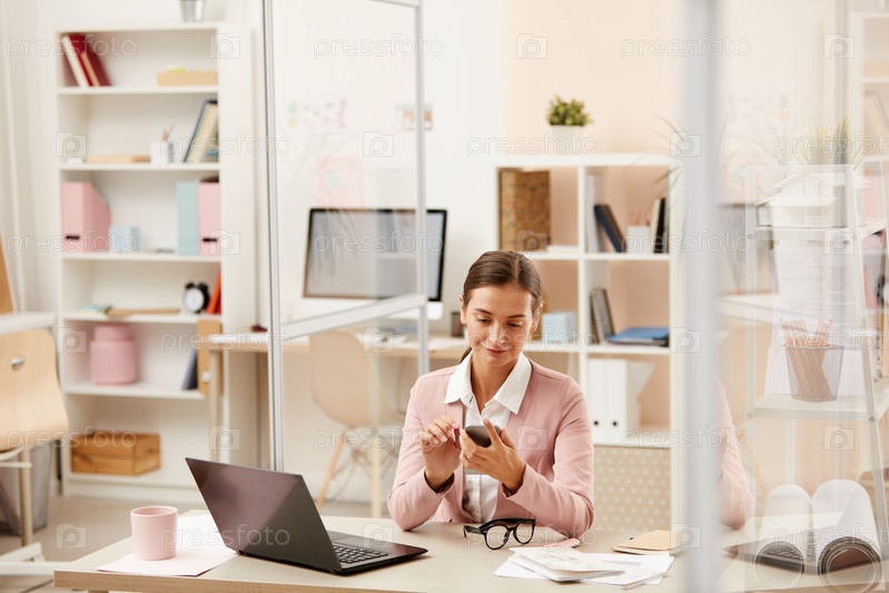 Деловая женщина получает сообщение по телефону
