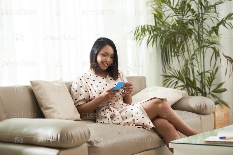 Женщина со смартфоном дома