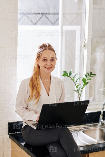 Деловая женщина, работающая на ноутбуке дома