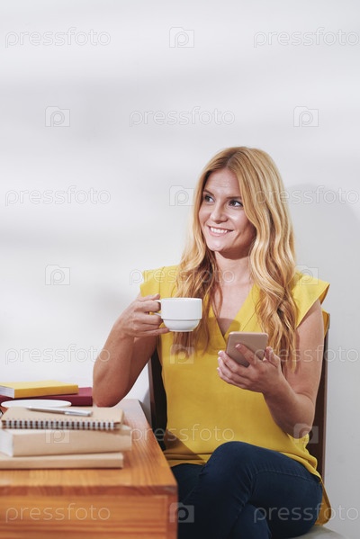 Студентка наслаждается перерывом на кофе