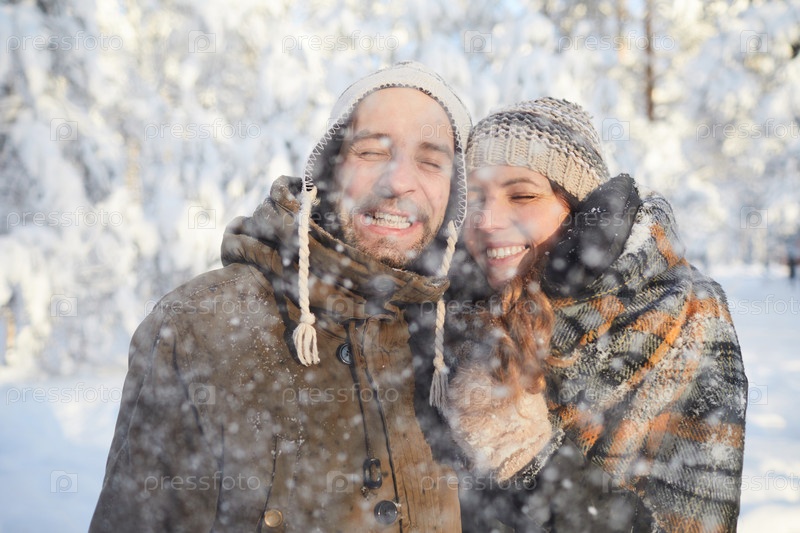 Любящая пара наслаждается снегопадом