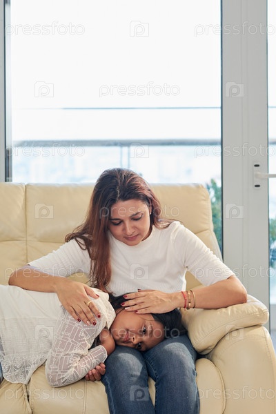 Мать и дочь сидят дома