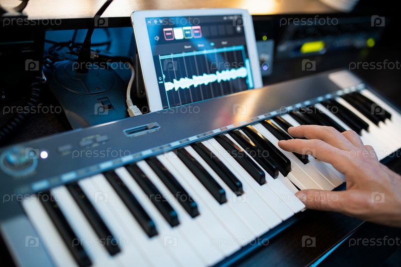 Пальцы молодого современного пианиста, нажимающего клавиши фортепианной клавиатуры
