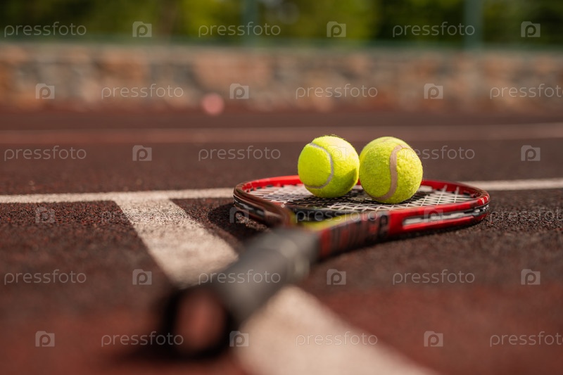 Два мяча для игры в теннис на ракете пересекают белую линию