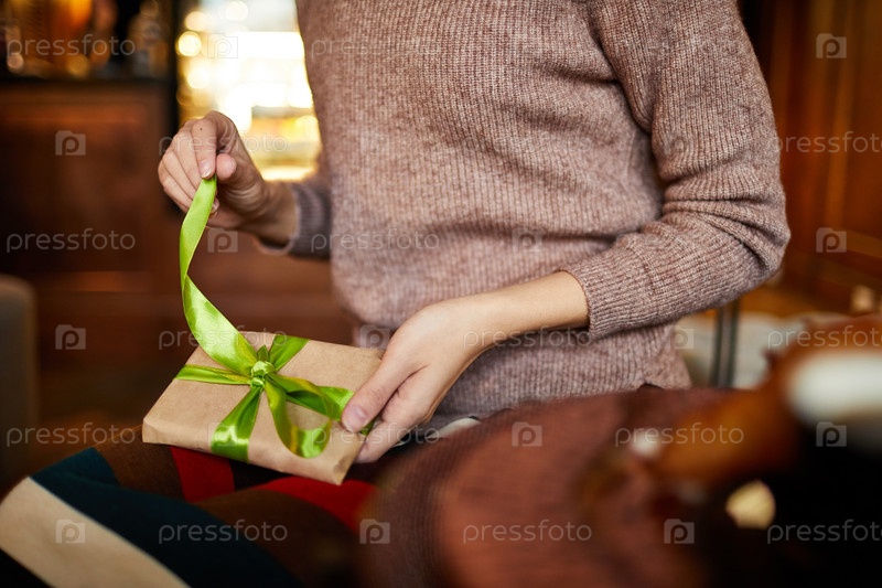 Девушка с упакованным подарком