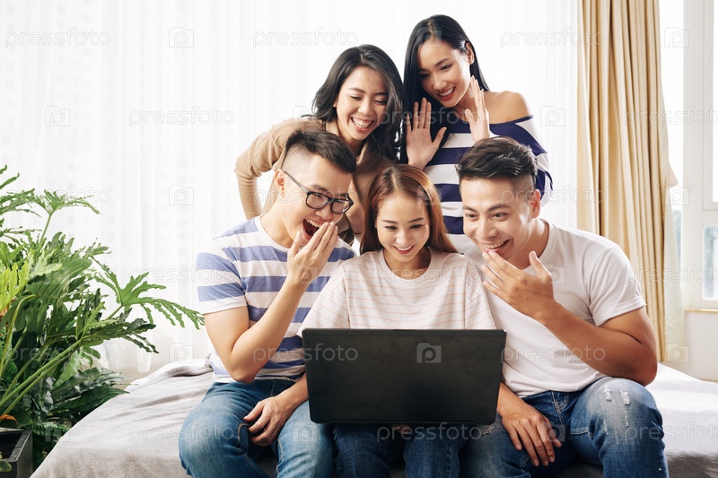 Друзья смотрят смешные видео