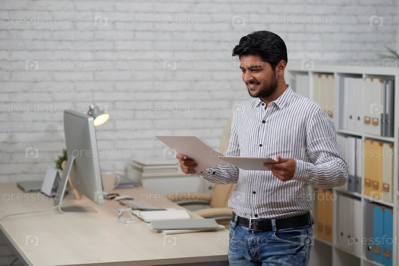 Бизнесмен с бумажными документами и планшетным компьютером