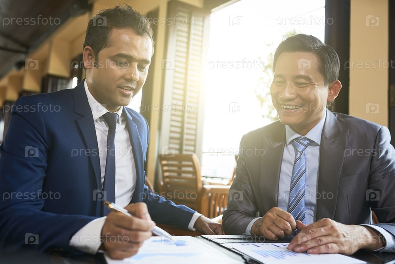 Бизнесмены, читающие бизнес-контракт