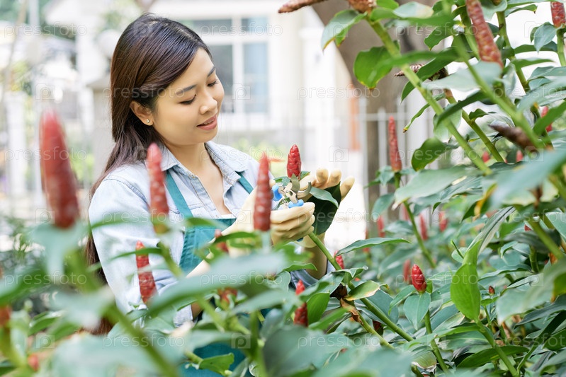Садовник, вырезающий цветы