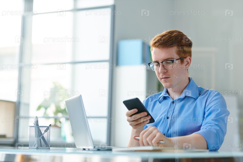Молодой творческий сотрудник, ищущий новые идеи в сети