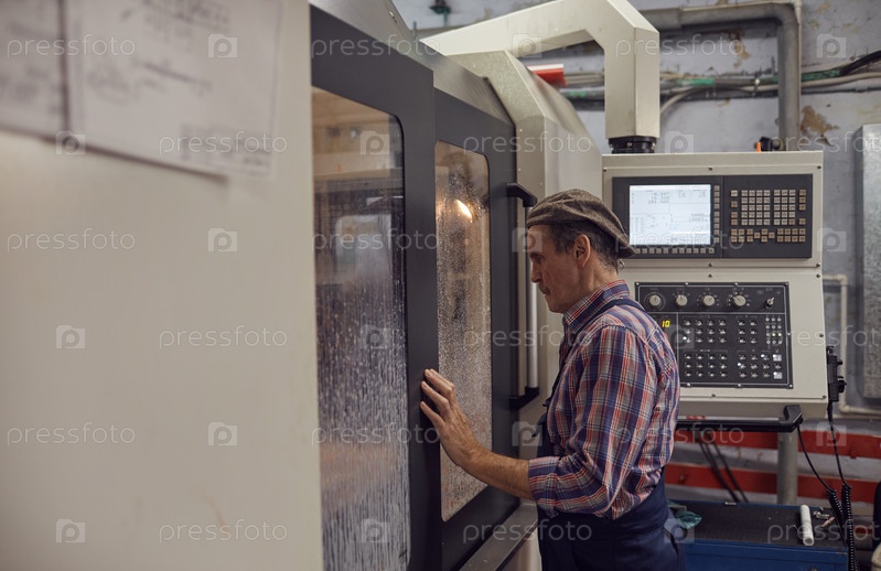 Инженер, контролирующий работу токарного станка