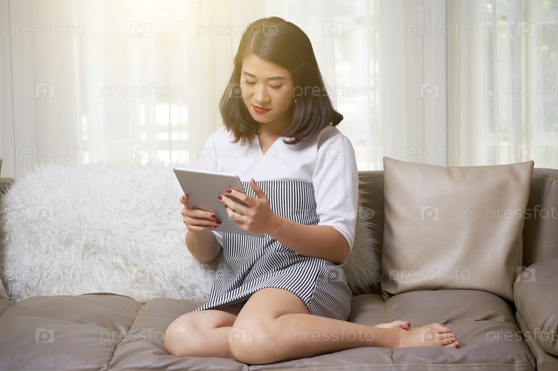 Женщина, просматривающая сеть с планшета