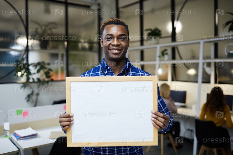 Чернокожий мужчина показывает пустой баннер