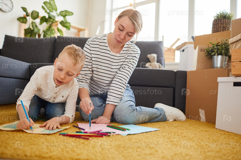 Мать и сын рисуют вместе
