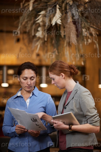 Бизнес-партнеры обсуждают финансовую отчетность